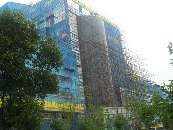 此圖為搭設(shè)中的腳手架。